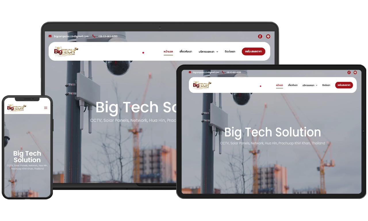 รับออกแบบเว็บไซต์ พัฒนาเว็บไซต์ ให้กับ บริษัท บิ๊ก เทค โซลูชั่น 2015 จำกัด ผู้นำด้านการให้บริการเทคโนโลยีสารสนเทศและโซลูชั่นระบบองค์กร ให้บริการตั้งแต่การออกแบบระบบ ติดตั้ง ดูแลรักษา ด้วยความเชี่ยวชาญและทีมงานวิศวกรผู้มากประสบการณ์ เชื่อมั่นในการสร้างโซลูชั่นที่ เสถียร ปลอดภัย และขยายได้ตามการเติบโตของธุรกิจ ครอบคลุมทั้ง SME และองค์กรขนาดใหญ่