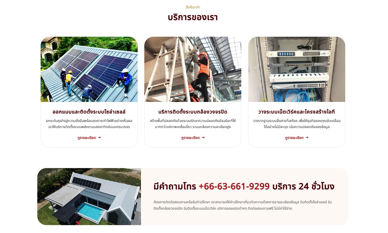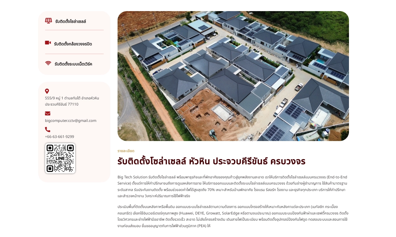 บริษัท บิ๊ก เทค โซลูชั่น 2015 จำกัด – Big Tech Solution รับติดตั้งโซล่าร์เซลล์ ครบวงจร มาตรฐานสากล รับติดตั้งกล้องวงจรปิด รับติดตั้งระบบเน็ตเวิร์ค พร้อมดูและระบบตลอดอายุการใช้งาน มุ่งมั่นส่งมอบเทคโนโลยีที่ตอบโจทย์ทั้งประสิทธิภาพและความคุ้มค่า เทคโนโลยีสารสนเทศและโซลูชั่นระบบองค์กร บริการตั้งแต่การออกแบบระบบ ติดตั้ง ดูแลรักษา ด้วยความเชี่ยวชาญและทีมงานวิศวกร
